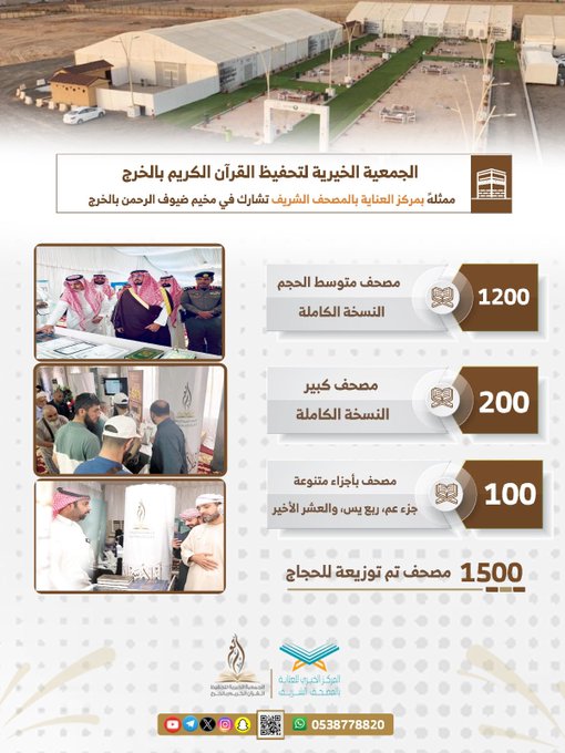 سمو محافظ الخرج يكرم الجمعية الخيرية لتحفيظ القرآن الكريم لمشاركتها في مركز خدمة ضيوف الرحمن